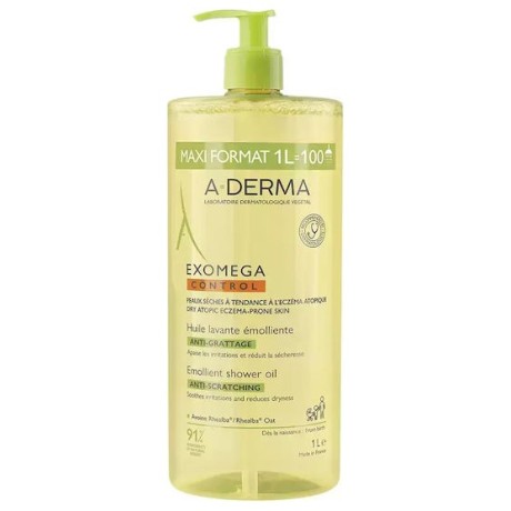 A-Derma Exomega Control Anti-Scratching Emollient Shower Oil Μαλακτικό Έλαιο Καθαρισμού Κατά του Αισθήματος Κνησμού, 1L