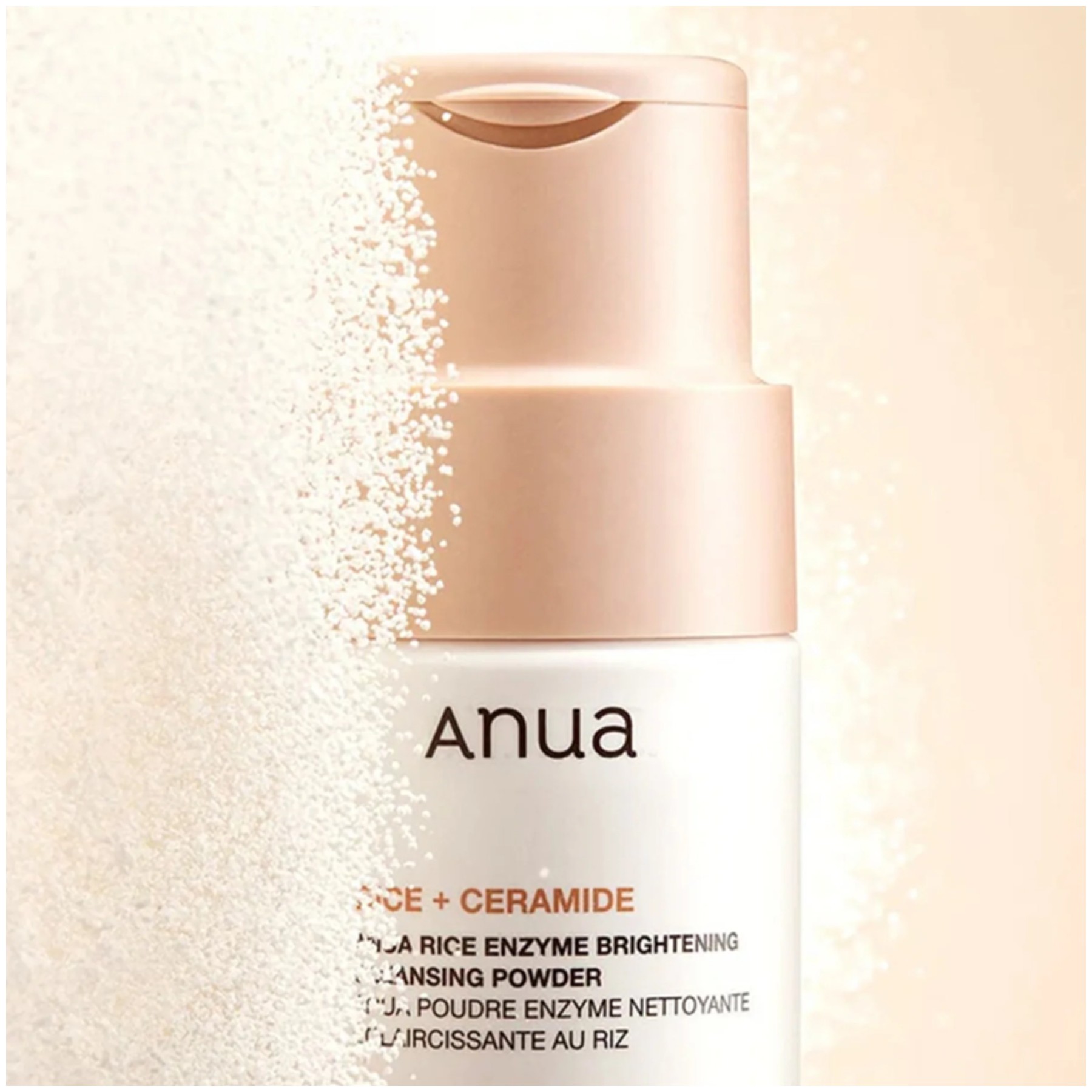 Το Anua Rice Enzyme Brightening Cleansing Powder είναι ένα καθαριστικό σε σκόνη χωρίς άρωμα που περιέχει ήπια συστατικά και αφήνει το δέρμα λαμπερό και με ομοιόμορφο τόνο. Περιέχει ANUA RICE WATER+, ένα πατενταρισμένο σύμπλεγμα που περιλαμβάνει εκχύλισμα ρυζιού, αρβουτίνη και παπαΐνη για την αντιμετώπιση του θαμπού ανομοιόμορφου τόνου του δέρματος και απολεπίζει απαλά την επιφάνεια του δέρματος, λειαίνοντας την υφή και τον τόνο του.