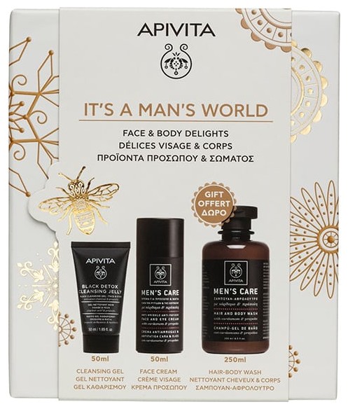 Apivita Promo Men's Care Σετ Ανδρικής Περιποίησης με Κρέμα Προσώπου & Ματιών, 50ml, Gel Καθαρισμού για Πρόσωπο & Μάτια, 50ml & Δώρο Σαμπουάν - Αφρόλουτρο, 250ml, 1σετ