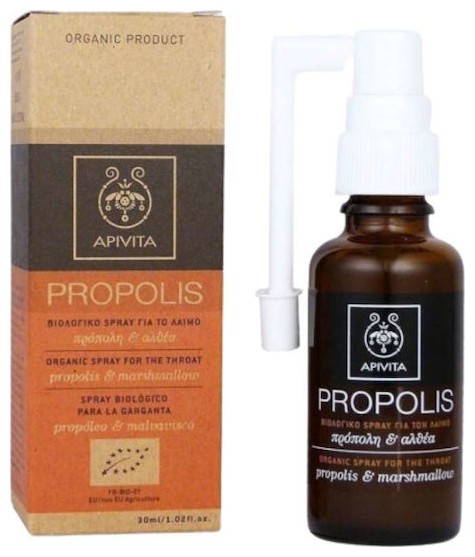 Βιολογικό σπρέυ για το λαιμό με πρόπολη και άλθαια. Χάρη στις αντισηπτικές, αντιοξειδωτικές, θεραπευτικές και αντι-ιικές ιδιότητες των συστατικών του αντιμετωπίζει τα συμπτώματα του κοινού κρυολογήματος, ενώ το μέλι και η άλθαια ανακουφίζουν και μαλακώνουν τον πονόλαιμο και το βήχα. Δεν περιέχει συνθετικά συστατικά που μπορεί να έχουν βλαβερές συνέπειες για την υγεία σας και το περιβάλλον και δεν περιέχονται συντηρητικά και ζάχαρη. Ενδείκνυται για ομοιοπαθητική.
