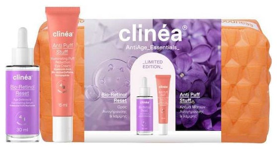 Clinéa Limited Edition Gift Set AntiAge Essentials με Νεσεσέρ & Serum Bioretinol Reset 30ml & Κρέμα Ματιών Anti Puff Stuff 15ml