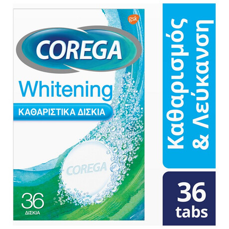 Corega Whitening Καθαριστικά Δισκία Οδοντοστοιχιών, 36 Δισκία