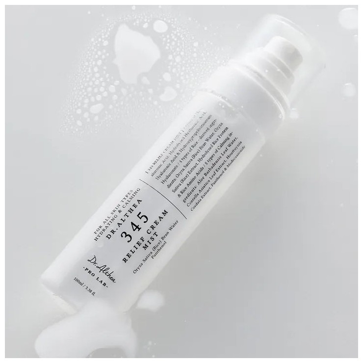 Το Dr. Althea 345 Relief Cream Mist είναι ένα προηγμένο, διπλής φάσης ενυδατικό mist που προσφέρει άμεση ανακούφιση, βαθειά ενυδάτωση και ενισχυμένη άνεση στην επιδερμίδα — οποιαδήποτε στιγμή της ημέρας. Ο καινοτόμος συνδυασμός κρεμικής υφής και υδαρής essence δημιουργεί ένα λεπτό, μεταξένιο νέφος που αγκαλιάζει το δέρμα, χαρίζοντας άμεση δροσιά και πλούσια θρέψη χωρίς λιπαρότητα.