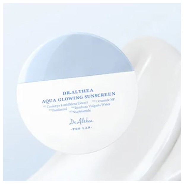 Η Dr. Althea Pro Lab Aqua Glowing Sunscreen είναι ενυδατική αντηλιακή κρέμα με υψηλή προστασία SPF50+ / PA++++ που θωρακίζει την επιδερμίδα από τις βλαβερές ακτίνες UVA και UVB. Η σύνθεσή της είναι εμπλουτισμένη με νερό από μπαμπού, το οποίο υποστηρίζει τη φυσική ανανέωση του δέρματος και συμβάλλει στη διατήρηση της καθαρής, φωτεινής όψης. Επιπλέον, η πανθενόλη και το εκχύλισμα Caulerpa Lentillifera (θαλάσσιο φύκι) προσφέρουν εντατική ενυδάτωση και λείανση, χαρίζοντας άνεση ακόμη και στις πιο ξηρές επιδερμίδες.