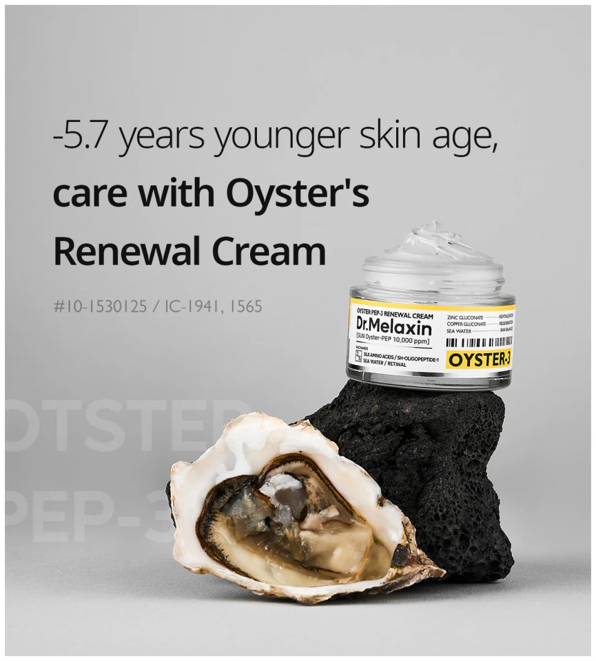 H Dr.Melaxin Oyster Peptide Cream είναι μια πολυτελής κρέμα με σύνθεση πλούσια σε πεπτίδια και αντιγηραντικούς παράγοντες, όπως εκχύλισμα στρειδιών και αμινοξέα μεταξιού. Τα στρείδια έχουν ένα από τα υψηλότερα επίπεδα ψευδαργύρου σε οποιαδήποτε ζωντανό ον. Ο ψευδάργυρος είναι βασικό αντιοξειδωτικό και αναγεννητικό συστατικό, το οποίο προάγει την αντιγήρανση.