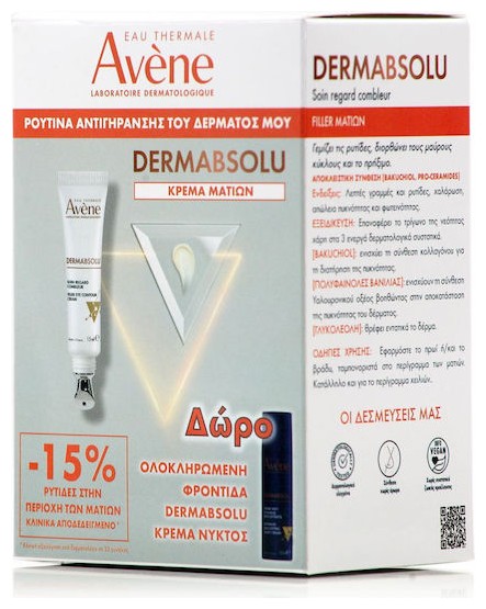 Eau Thermale Avène Promo Dermabsolu Filler Ματιών για γέμισμα ρυτίδων, διόρθωση μαύρων κύκλων και πρήξιμο & ΔΩΡΟ Dermabsolu Κρέμα Νυκτός Εντατικής Αναδόμησης για επαναφορά του περιγράμματος του προσώπου και διόρθωση ρυτίδων