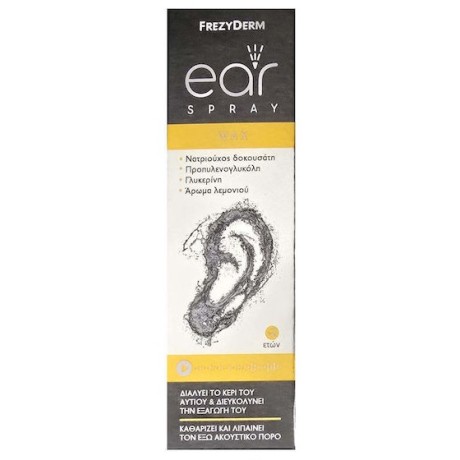 Ωτικό σπρέι με ειδικά μελετημένη σύνθεση που μαλακώνει και διαλύει τη συσσώρευση του κεριού στα αυτιά διευκολύνοντας την εξαγωγή του ενώ ταυτόχρονα καθαρίζει και λιπαίνει τον έξω ακουστικό πόρο, συμβάλλοντας στην πρόληψη της συσσώρευσης κεριού στο αυτί.