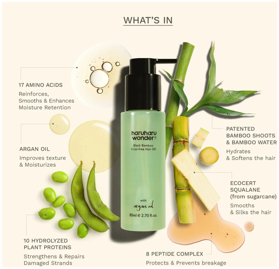 Haruharu Wonder Black Bamboo Frizz-free Hair Oil - Λάδι Μαλλιών για Λάμψη & Έλεγχο του Φριζαρίσματος, 80 ml