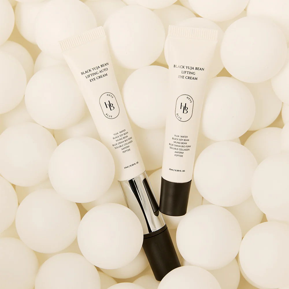 Η HEVEBLUE Black Yuja Bean Lifting Eye Cream είναι μια προηγμένη συσφικτική κρέμα ματιών, εμπλουτισμένη με υψηλής ποιότητας δραστικά συστατικά: 427.500ppm νερό από γιούζα, 50.000ppm εκχύλισμα μαύρου φασολιού και 100.000ppm εκχύλισμα από φασόλι mung.