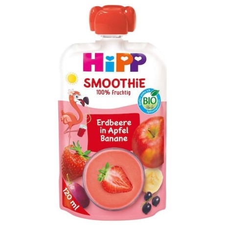 HiPP Bio Smoothie με φράουλα, μήλο και μπανάνα, μια δροσιστική λιχουδιά, γεμάτη θρεπτικές αξίες ! Είναι 100% φρουτώδες! Για τους λάτρεις των smoothie, μικρούς και μεγάλους.