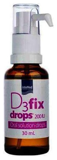 Το D3 Fix Drops είναι ένα συμπλήρωμα διατροφής βιταμίνης D3 (cholecalciferol) με τη μορφή πόσιμου διαλύματος σε σταγόνες, για την κάλυψη των αυξημένων απαιτήσεων του οργανισμού σε βιταμίνη D3 ή όταν υπάρχει ένδεια αυτής.