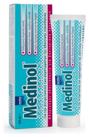 Η Intermed Medinol Toothpaste είναι καθημερινή φθοριούχος οδοντόπαστα για την αποτελεσματική και ολοκληρωμένη προστασία που έχει ανάγκη η στοματική κοιλότητα καθημερινά και ιδιαίτερα για τη μείωση της υπερευαισθησίας των δοντιών με συστηματική χρήση & τη συντήρηση του αποτελέσματος της εντατικής αντιμετώπισης της αυχενικής υπερευαισθησίας.