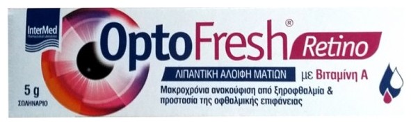 Λιπαντική αλοιφή ματιών OptoFresh Retino Lubricating Eye Ointment με βιταμίνη Α της Intermed, κατάλληλη για ανακούφιση από την ξηροφθαλμία αλλά και την μακροχρόνια προστασία της οφθαλμικής επιφάνειας.