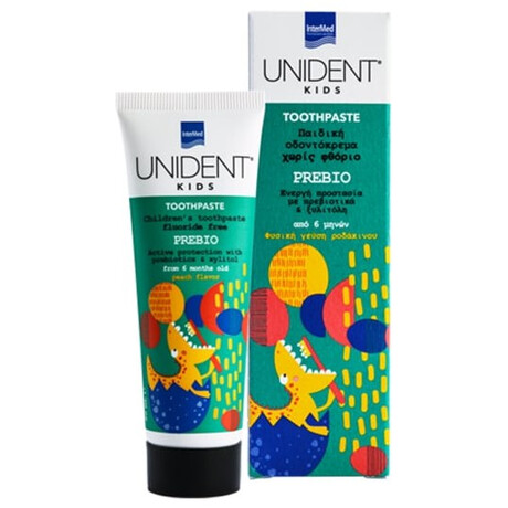 Intermed Unident Kids Toothpaste Prebio Παιδική Οδοντόκρεμα χωρίς Φθόριο με γεύση Ροδάκινο για 6+ Μηνών