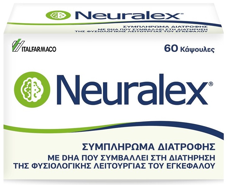 Το Neuralex®, είναι ένα συμπλήρωμα διατροφής με DHA, το οποίο συμβάλλει στη διατήρηση της φυσιολογικής λειτουργίας του εγκεφάλου. Επίσης, περιέχει EPA, βιταμίνη D3, φυλλικό οξύ, βιταμίνες του συμπλέγματος Β και σελήνιο.