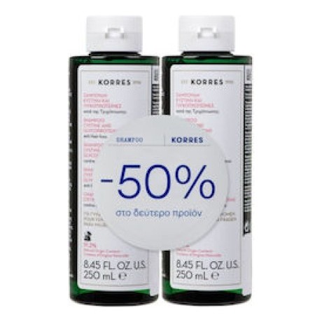 Korres Promo Γυναικείο Σαμπουάν για Τριχόπτωση με Κυστίνη και Γλυκοπρωτείνες το 2ο προϊόν -50% 2x250ml