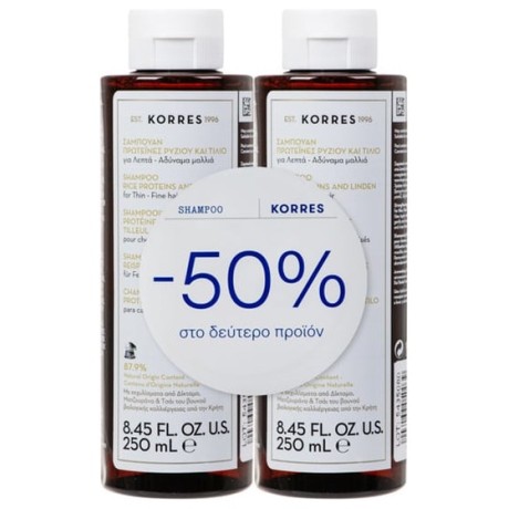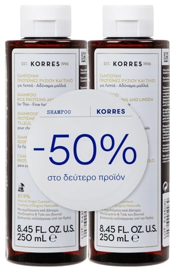 Korres PROMO PACK Πρωτεΐνη Ρυζιού & Τήλιο Σαμπουάν Για Λεπτά-Αδύναμα Μαλλιά 2x250ml
