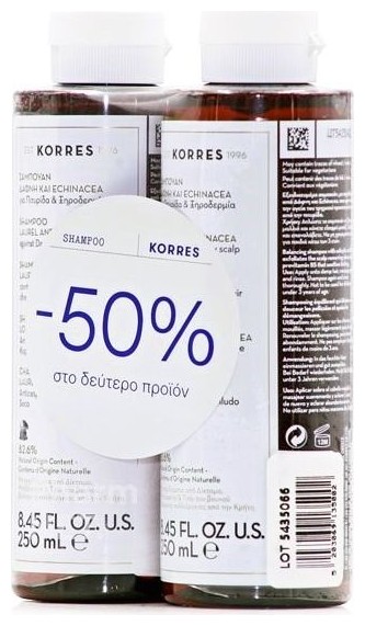 Korres PROMO PACK Δάφνη & Echinacea Σαμπουάν Για Πιτυρίδα & Ξηροδερμία 2x250ml