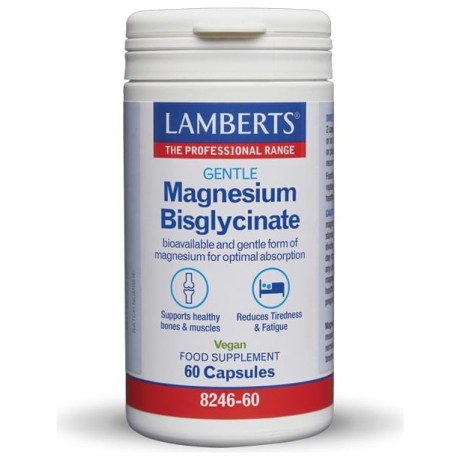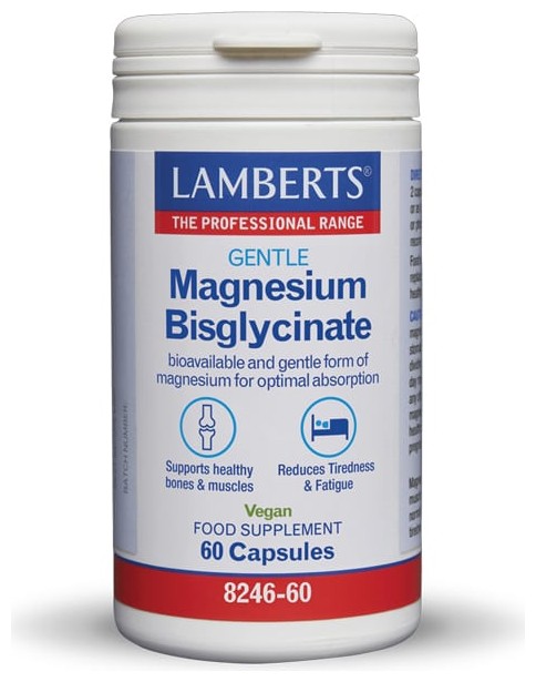 Το Gentle Magnesium Bisglycinate της Lamberts® αποτελεί μια εξαιρετικά υψηλής ισχύος φόρμουλα δισγλυκινικού μαγνησίου. Το δισγλυκινικό μαγνήσιο (=μαγνήσιο συνδεδεμένο με 2 μόρια του αμινοξέος γλυκίνη) αποτελεί μια μορφή χηλικού μαγνησίου με αυξημένη απορρόφηση και βιοδιαθεσιμότητα. Επιπροσθέτως, αποτελεί την μορφή του μαγνησίου με την μικρότερη πιθανότητα πρόκλησης γαστρεντερικών διαταραχών (gentle magnesium). Τέλος, η ικανότητα του δισγλυκινικού μαγνησίου να εισέρχεται στο Κεντρικό Νευρικό Σύστημα σε αυξημένες ποσότητες το καθιστά ως την προτεινόμενη μορφή μαγνησίου για άτομα που αναζητούν μαγνήσιο για ύπνο, άγχος και σωματική κόπωση.