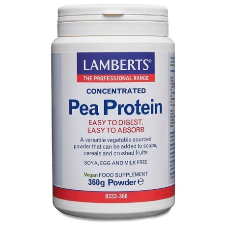 Το Pea Protein της Lamberts, όπως υποδεικνύει και το όνομα, είναι ένα προϊόν πρωτεΐνης από μπιζέλια . Οι διαδικασίες της εκχύλισης και της αγνότητας αυξάνουν τα συστατικά της πρωτεΐνης από τα κανονικά επίπεδα του 6% σε 90% φρέσκων μπιζελιών σε αυτό τι προϊόν.