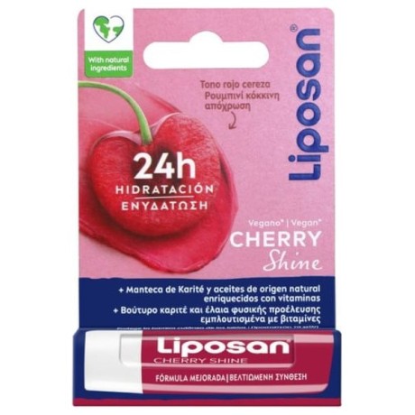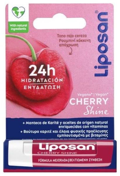 Θέλεις ατέλειωτη ενυδάτωση για τα χείλη σου και διαφανές αλλά ταυτόχρονα λαμπερό χρώμα που διαρκεί μέρα - νύχτα; To Liposan Fruity Shine Κεράσι είναι ο γλυκός τρόπος για να δώσεις στα χείλη σου έναν υπέροχο τόνο κόκκινου χρώματος και μακράς διαρκείας ενυδάτωση για απαλά, λεία χείλη, ιδανικά για φίλημα. Ικανοποίησε τις αισθήσεις με το ακαταμάχητο άρωμα κεράσι. Ο SPF 10 προστατεύει τα χείλη από τις ακτινοβολίες UVA και UVB.