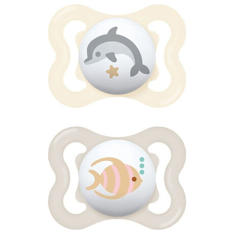 Mam Πιπίλες Σιλικόνης Δελφίνι/Ψάρι Μπεζ για 2-6 μηνών 2τμχ