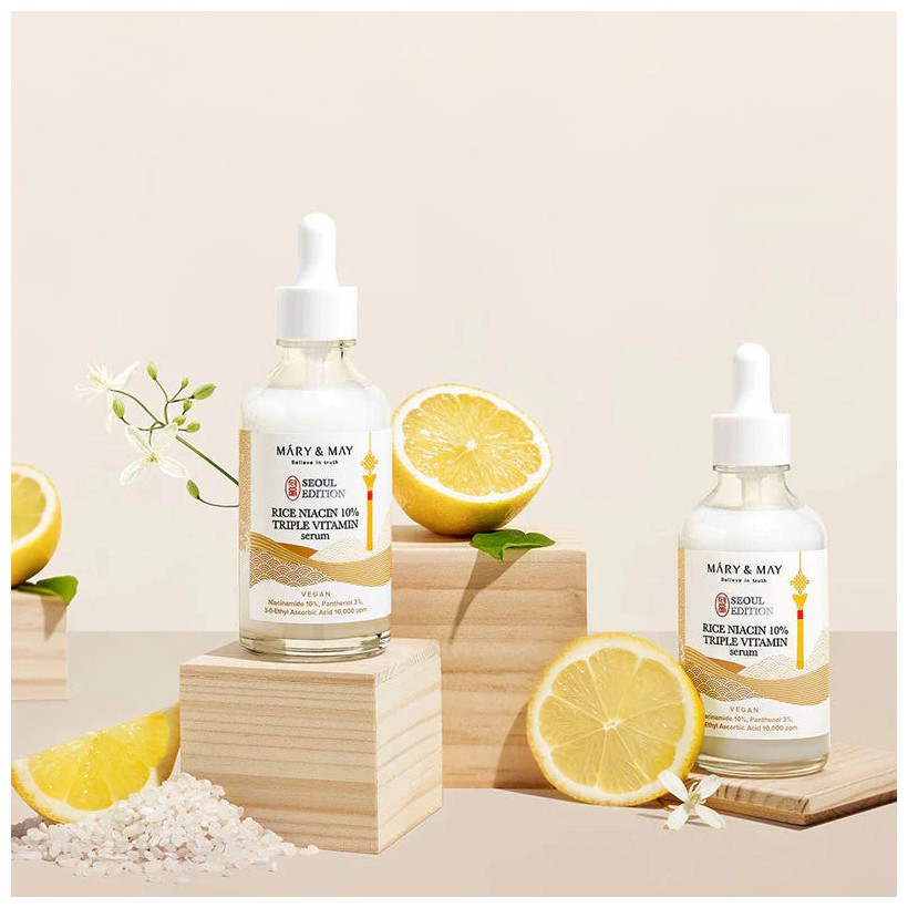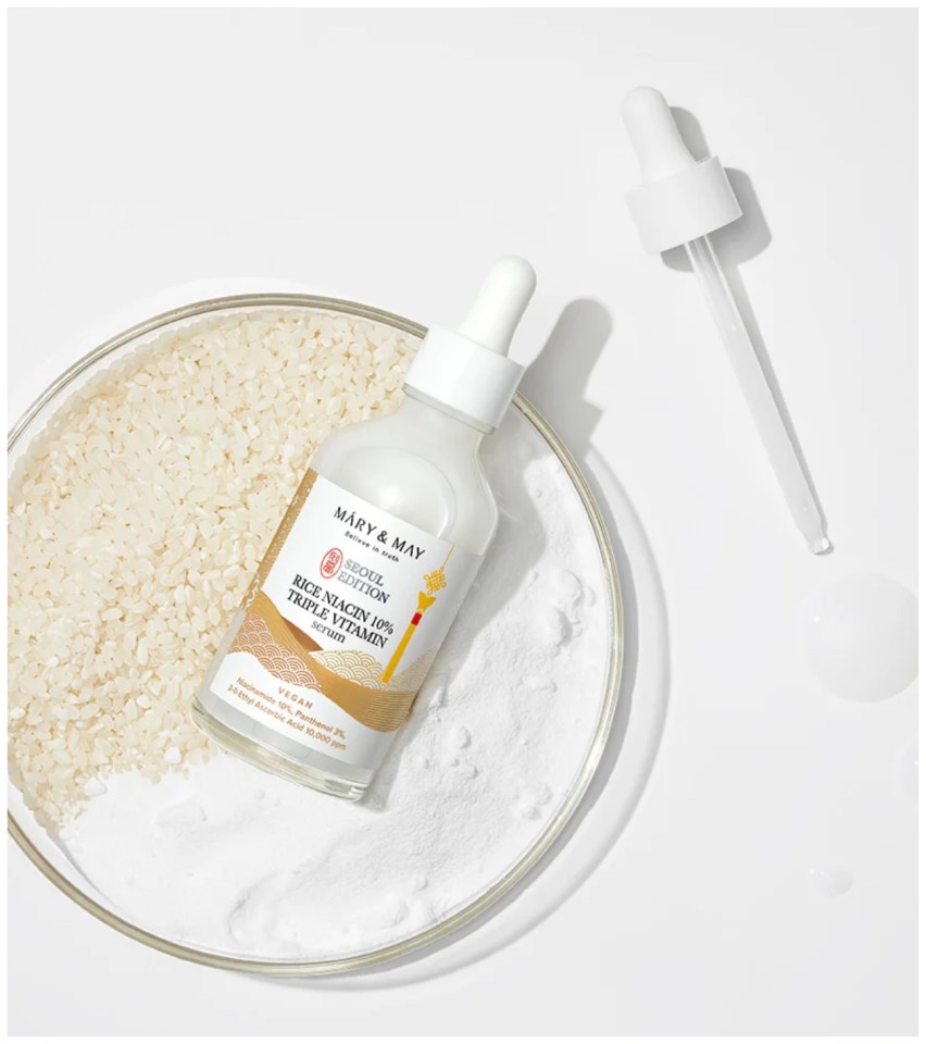 Το Mary & May Rice Niacin 10% Triple Vitamin Serum είναι ένας καινοτόμος ορός που συνδυάζει τη δύναμη της νιασιναμίδης (10%) με τρεις βασικές βιταμίνες (Β5, Ε & C) και γλουταθειόνη. Σχεδιασμένος για να αναζωογονεί το δέρμα, εξομαλύνει τον τόνο, βελτιώνει την υφή και επαναφέρει τη φυσική λάμψη της επιδερμίδας. Εμπλουτισμένος με βιολογικό εκχύλισμα ρυζιού Hiami και 3% πανθενόλη, προσφέρει βαθιά θρέψη, ενυδάτωση και καταπραΰνει αποτελεσματικά το δέρμα, καθιστώντας τον ιδανικό ακόμα και για ευαίσθητους τύπους δέρματος.