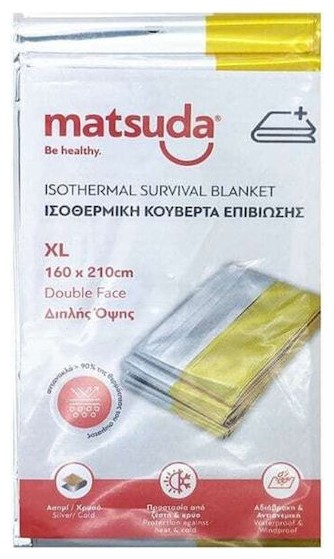 Ισοθερμική κουβέρτα επιβίωσης XL διπλής όψης ασημί/χρυσό.