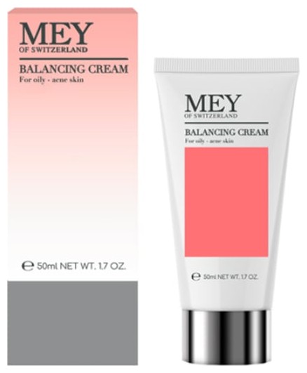 Το προϊόν Mey Balancing Cream είναι η ιδανική επιλογή για δέρματα με υπερβολική λιπαρότητα και προβλήματα ακμής. Το εκχύλισμα του φίκους Laminaria saccharina ρυθμίζει την έκκριση του σμήγματος και εμποδίζει τη δράση μικροοργανισμών, κυρίως του Propionibacterium acnes, που εμπλέκεται σε διαταραχές του λιπαρού δέρματος και το σχηματισμό φλεγμονών. Τα α-υδροξυ οξέα (A.H.A.) και το σαλικυλικό οξύ διεγείρουν την απολέπιση των νεκρών κυττάρων που μπορούν να οδηγήσουν σε υπερχρώσεις και προβλήματα ακμής.