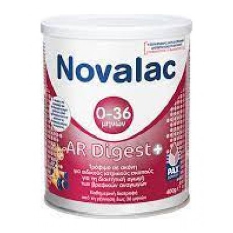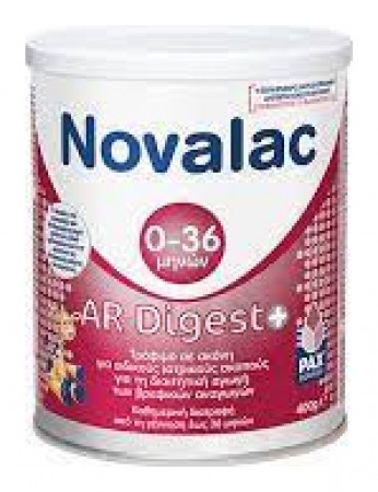 Σε βρέφη με έντονες αναγωγές, το NOVALAC AR DIGEST αποτελεί την ιδανικότερη διατροφική λύση. Επειδή στις σοβαρές περιπτώσεις αναγωγών, εκτός από την αντιμετώπιση των γαστρικών επιστροφών χρειάζεται μία φόρμουλα που να εξασφαλίζει άριστη πέψη και ταχεία γαστρική κένωση, στο NOVALAC AR DIGEST: O πηκτικός παράγοντας είναι χαρούπι και ειδικά επεξεργασμένο άμυλο πατάτας (100% αμυλοπηκτίνη) για την αντιμετώπιση των αναγωγών. Tο πρωτεϊνικό του προφίλ αποτελείται από μερικώς υδρολυμένη πρωτεΐνη ορού γάλακτος (χωρίς καζεΐνη) για να έχουμε μία όσο το δυνατόν πιο εύπεπτη φόρμουλα με ήπια υποαλλεργική δράση. Tα ΜCT's αποτελούν το 14% του συνόλου των λιπαρών οξέων για την προώθηση της γαστρικής κένωσης.400g