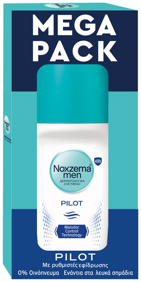 To ανδρικό αντιιδρωτικό αποσμητικό rollon Noxzema Men Pilot, με κλινικά αποδεδειγμένη απαλότητα και τεχνολογία Malodor Control απελευθερώνει άρωμα φρεσκάδας που διαρκεί, εξασφαλίζει έλεγχο της εφίδρωσης και προσφέρει αποτελεσματική 48ωρη προστασία από τον ιδρώτα και την κακοσμία. Είναι δερματολογικά ελεγμένο, φιλικό με την επιδερμίδα, έχει σύνθεση ενάντια στα λευκά σημάδια, διακριτικό αρρενωπό άρωμα και δεν περιέχει οινόπνευμα. Εφαρμόστε ένα λεπτό στρώμα στην περιοχή της μασχάλης.