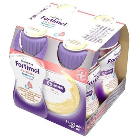 Το Nutricia Forticare Advanced Cool Mango Peach (4 x 125ml) είναι ένα έτοιμο προς κατανάλωση, υπερθερμιδικό και υπερπρωτεϊνικό ρόφημα, ειδικά σχεδιασμένο για την υποστήριξη ασθενών με καχεξία ή αυξημένες ανάγκες λόγω καρκίνου ή άλλων καταβολικών καταστάσεων. Περιέχει ω-3 λιπαρά οξέα (EPA/DHA), υψηλά επίπεδα βιταμίνης D και είναι εμπλουτισμένο με αντιοξειδωτικά και φυτικές ίνες.