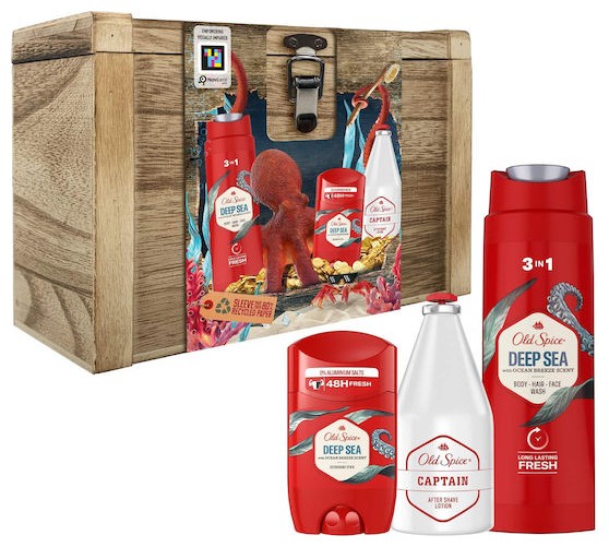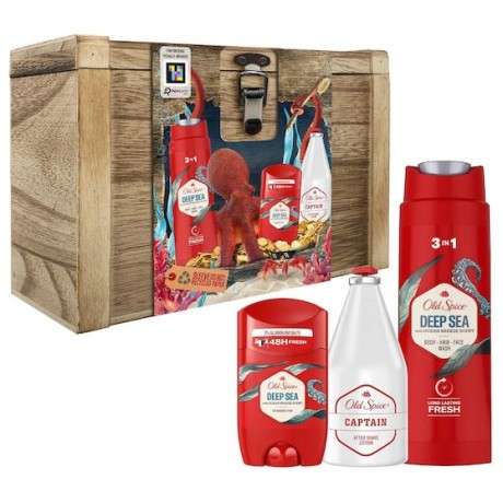 Old Spice Xmas Σεντούκι Θησαυρού Σετ Δώρου για Άνδρες με Deep Sea Αποσμητικό Στικ, 50ml, Αφρόλουτρο & Σαμπουάν, 250ml & Captain After Shave, 100ml, 1σετ