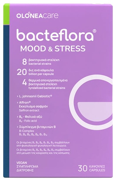 Το Olonea Bacteflora Mood & Stress είναι ειδικά σχεδιασμένο*: • για την υποστήριξη της συναισθηματικής ισορροπίας • για τη μείωση του άγχους.