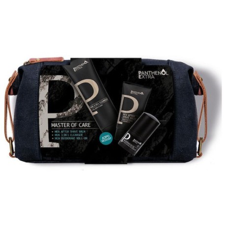 Panthenol Extra Men Master of Care Promo After Shave Balm Ανδρικό Ενυδατικό Balm για μετά το Ξύρισμα, 75ml, 3 in1 Cleanser Face Body Hair Ανδρικό Αφρόλουτρο & Σαμπουάν, 200ml, Deodorant Roll-on Ανδρικό Αποσμητικό, 50ml & Δώρο Νεσεσέρ, 1σετ