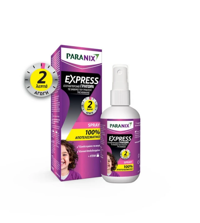Το Paranix Express Σπρέι έχει αποδειχθεί 100% αποτελεσματικό κατά των φθειρών του τριχωτού της κεφαλής, των νυμφών και των αυγών / κονίδων: