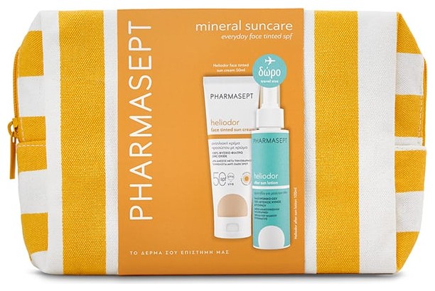 Pharmasept Promo Heliodor Face Tinted Sun Cream Αντηλιακή Κρέμα Προσώπου με Χρώμα SPF50, 50ml & Travel Size Heliodor After Sun Lotion Γαλάκτωμα Προσώπου-Σώματος για Μετά την Έκθεση στον Ήλιο, 100ml & Νεσεσέρ, 1τεμ, 1σετ