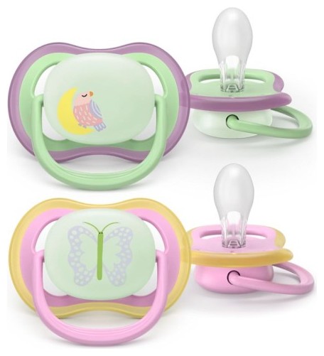 Philips Avent Ultra Air Nighttime Silicone Soother 6-18m Κωδ SCF376/29, 2 Τεμάχια Λαχανί - Ροζ