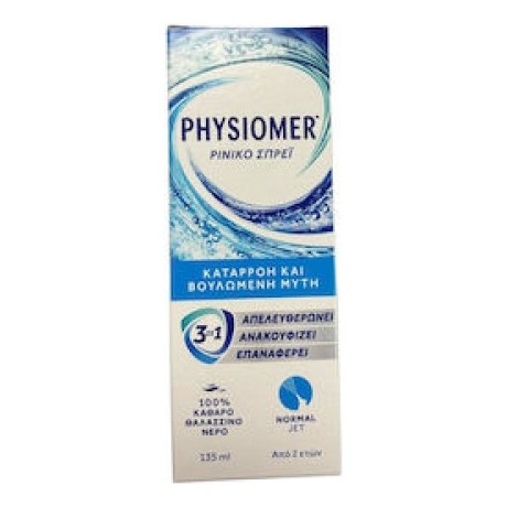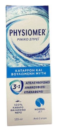 Το PHYSIOMER Normal Jet είναι ισότονο σπρέι με 100% θαλασσινό νερό εμπλουτισμένο με μεταλλικά στοιχεία που καθαρίζει τη μύτη και βοηθά στην απομάκρυνση ρινικών εκκρίσεων, αλλεργιογόνων, ιών και βακτηρίων. Είναι ειδικά προσαρμοσμένο ακόμη και στον πιο ευαίσθητο ρινικό βλεννογόνο και έτσι είναι ασφαλές να χρησιμοποιείται αρκετές φορές την ημέρα.