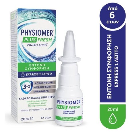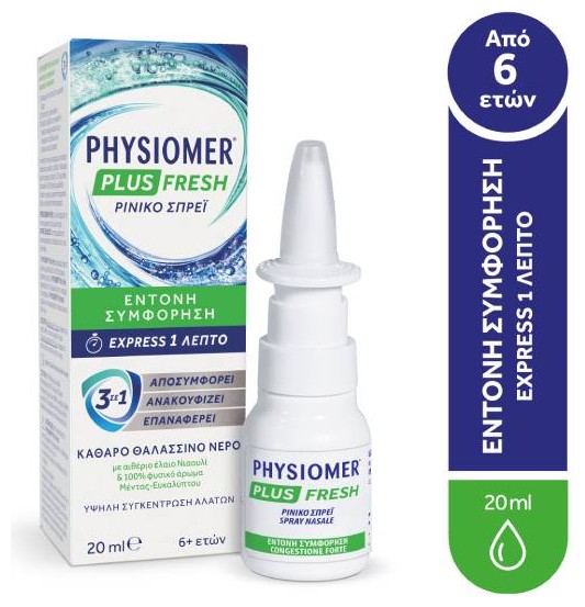 To Physiomer Plus Fresh 3in1 2είναι ένα υπέρτονο ρινικό αποσυμφορητικό σπρέι με θαλασσινό νερό κατάλληλο για παιδία άνω των 6 ετών και για ενήλικες.