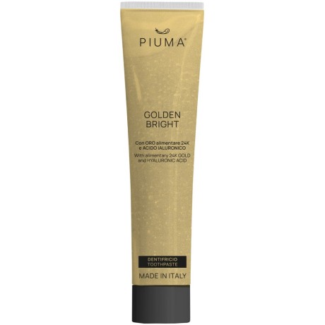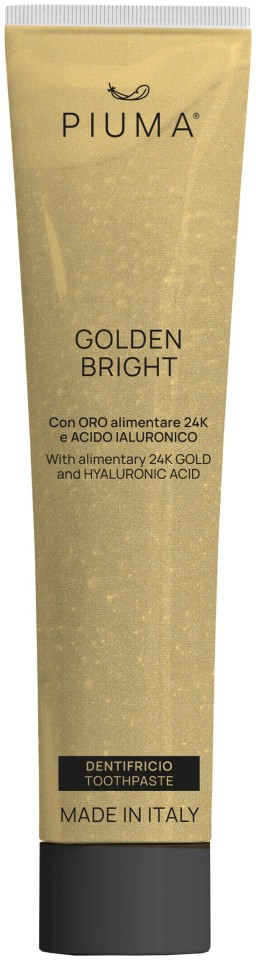 Η Piuma Golden Bright είναι μια πολυτελής οδοντόκρεμα που συνδυάζει προηγμένη τεχνολογία στοματικής υγιεινής με φυσικά ενεργά συστατικά υψηλής ποιότητας. Εμπλουτισμένη με χρυσό 24 καρατίων και υαλουρονικό οξύ, προσφέρει στοχευμένη ενυδάτωση, προστασία και αναζωογόνηση τόσο στα δόντια όσο και στα ούλα.