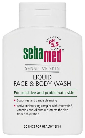 Το Sebamed Liquid Face and Body Wash, είναι δερματολογικά αναπτυγμένο, πολύ ήπιο, και συμβατό με τα πιο ευαίσθητα δέρματα. Καθαρίζει τους πόρους απαλά και βαθιά χωρίς να προκαλεί ξηρότητα ή ερεθισμούς όπως το κανονικό σαπούνι. Ενισχυμένο με ένα φυσικό ενυδατικό σύμπλεγμα βιταμινών και καταπραϋντική αλλαντοΐνη, ξεπλένεται εντελώς για ένα πιο φυσικό, υγιές και λείο δέρμα.