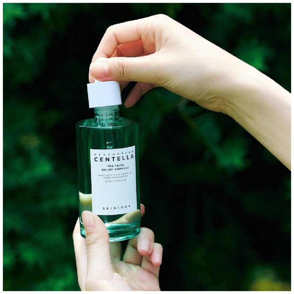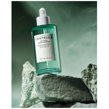 H Madagascar Centella Tea-Trica Relief Ampoule είναι μια μη φαγεσωρογόνος αμπούλα που βοηθά στη φροντίδα του δέρματος με τάση για ατέλειες και στη διατήρηση μιας υγιούς επιδερμίδας. Το Pine Tree Complex (Σύμπλεγμα Πεύκου) βοηθά στη φροντίδα του δέρματος με τάση ακμής και στη διατήρηση μιας ισορροπημένης εμφάνισης. Το εκχύλισμα Centella Asiatica βοηθά επίσης στην καταπράυνση της δερματικής ενόχλησης. Παράλληλα το σύμπλεγμα Anti-Sebum P Complex ελέγχει την περίσσεια σμήγματος, λιπαρότητας και συσφίγγει τους πόρους. Με μία ελαφριά υδαρή υφή ο ορός αυτός απορροφάται αμέσως από το δέρμα και η μη κολλώδης σύνθεσή του αφήνει το δέρμα αναζωογονημένο και ενυδατωμένο.