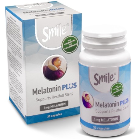 Το Smile Melatonin 3 mg είναι ένα συμπλήρωμα διατροφής σε μορφή κάψουλας, σχεδιασμένο για να υποστηρίζει τη σωστή λειτουργία του βιολογικού ρολογιού και να βοηθά στη βελτίωση του ύπνου και την αντιμετώπιση των συμπτωμάτων του jet lag.