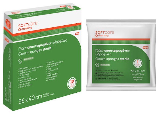 Γάζα αποστειρωμένη - 36cm x 40cm – 16ply - 9 x 10cm SoftCare 10τμχ