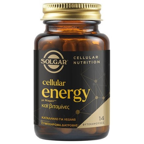 Το Solgar Cellular Energy είναι ένα προηγμένο συμπλήρωμα διατροφής που συμβάλλει στην παραγωγή κυτταρικής ενέργειας μέσω της αύξησης των επιπέδων του NAD+, ενός κρίσιμου συνενζύμου για τη μεταβολική και μιτοχονδριακή λειτουργία. Περιέχει το πατενταρισμένο συστατικό Niagen® (Nicotinamide Riboside Chloride), καθώς και ένα σύμπλεγμα βιταμινών Β και C που ενισχύουν τη φυσική ενέργεια, μειώνουν την κόπωση και προάγουν τη ζωτικότητα του οργανισμού.