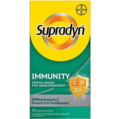 Supradyn Immunity 30 αναβράζοντα δισκία Αριθμός Γνωστοποίησης ΕΟΦ: 77403/12.7.2022. Το προϊόν δεν υπόκειται σε διαδικασία αδειοδότησης.