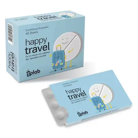 UPLAB HAPPY TRAVEL FOOD SUPPLEMENT ΠΡΟΛΗΨΗ & ΑΝΤΙΜΕΤΩΠΙΣΗ ΤΗΣ ΝΑΥΤΙΑΣ ΤΟΥ ΤΑΞΙΔΙΟΥ, 15TABS
