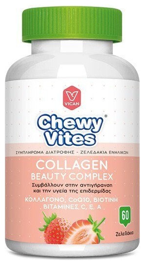 Κάθε ζελεδάκι Chewy Vites Collagen Beauty Complex περιέχει έναν ισορροπημένο συνδυασμό κολλαγόνου, 4 βιταμινών και συνένζυμου Q10. Είναι σχεδιασμένο για να υποστηρίξει την υγεία του δέρματος και τη γενική ευεξία του οργανισμού. Το κολλαγόνο αποτελεί βασικό συστατικό για την ελαστικότητα και την υγεία του δέρματος.