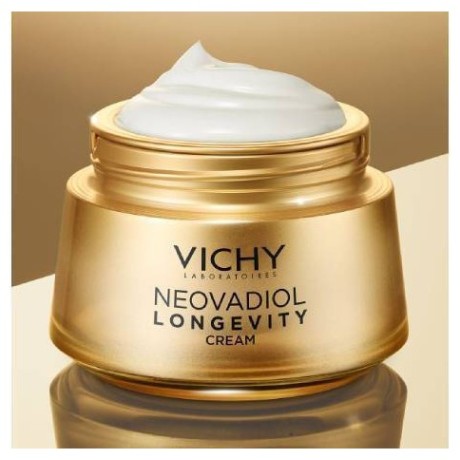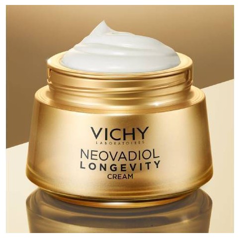 Η Vichy Neovadiol Longevity Κρέμα Αναδόμησης περιέχει 13% Longevisia Technology, μια επαναστατική τεχνολογία Μακροζωίας που συγκεντρώνει τις ιδιότητες του Proxylane, της Νιασιναμίδης και του Senevisium. Επαναφέρει την ικανότητα των κυττάρων της επιδερμίδας να δημιουργούν νεανικό ιστό, συμβάλλοντας στην αποκατάσταση και τη στήριξη του όγκου σε 5 περιοχές-κλειδιά του προσώπου: περίγραμμα, γωνίες του στόματος, ζυγωματικά, γωνίες των ματιών και μέτωπο.